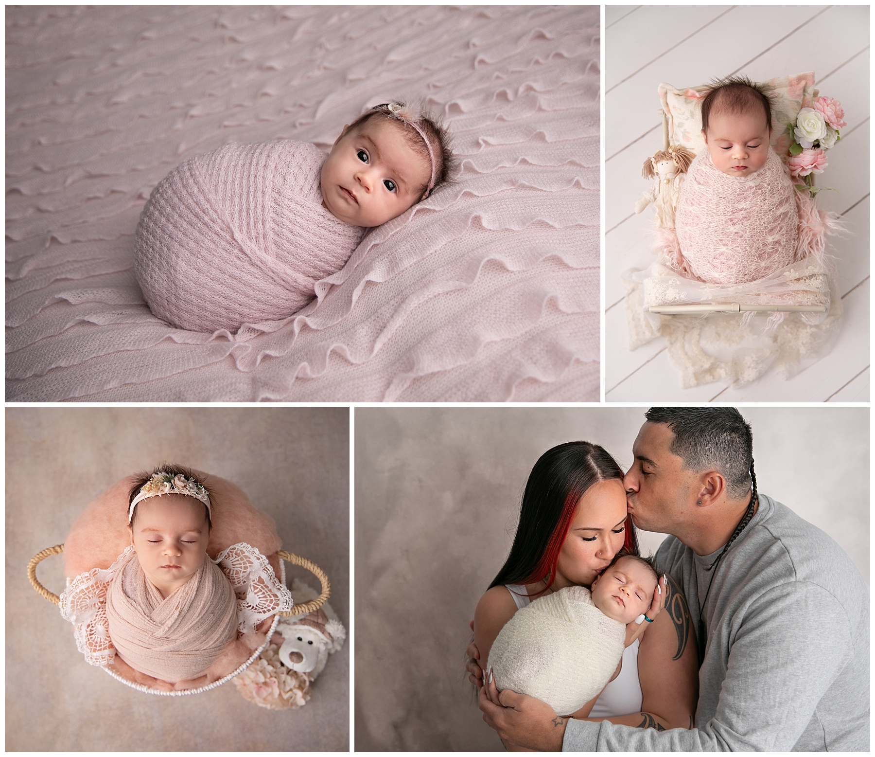 As a newborn baby photographer in Whangarei, Northland I've had the joy of capturing the earliest moments of many little ones. Recently, I had a particularly special photoshoot in my private studio with a family welcoming their fourth child – and first girl, after three boys. The session was filled with tender moments, celebrating the arrival of this long-awaited little princess.